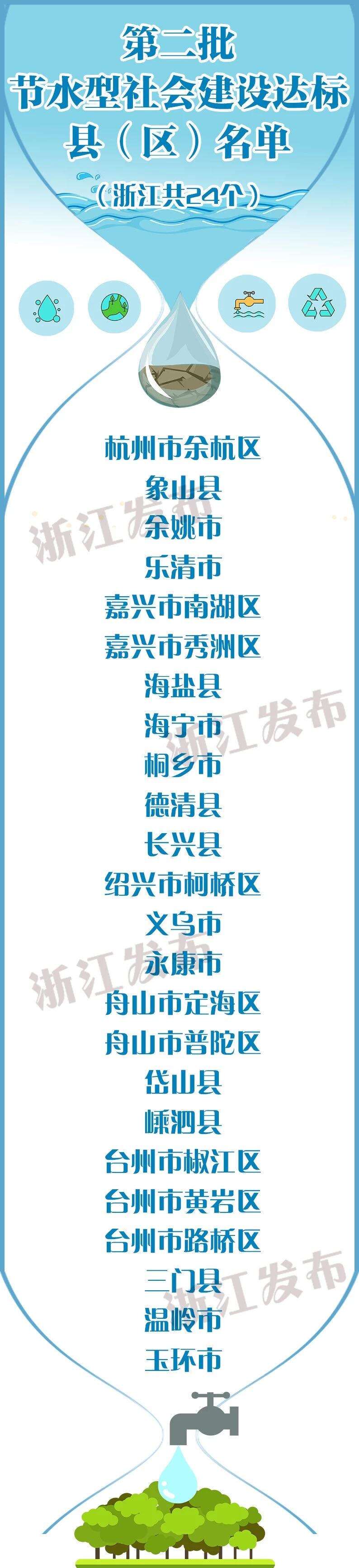 日前,国家水利部对2018年度完成节水型社会达标建设任务的县(区)进行了全面复核。经复核,共有201个县(区)达到了《节水型社会评价标准(试行)》,水利部同时公布了第二批节水型社会建设达标县(区)名单。浙江24地上榜,其中,舟山市两区两县均上榜!
