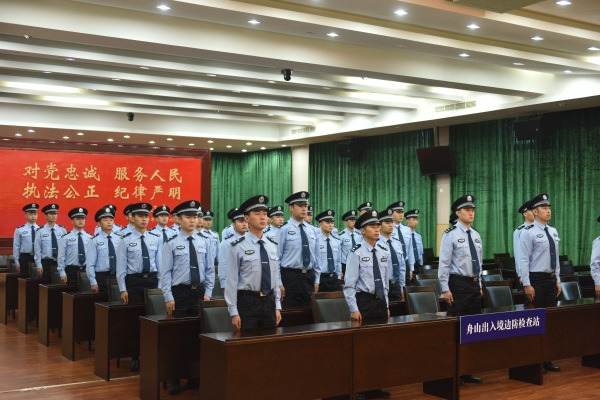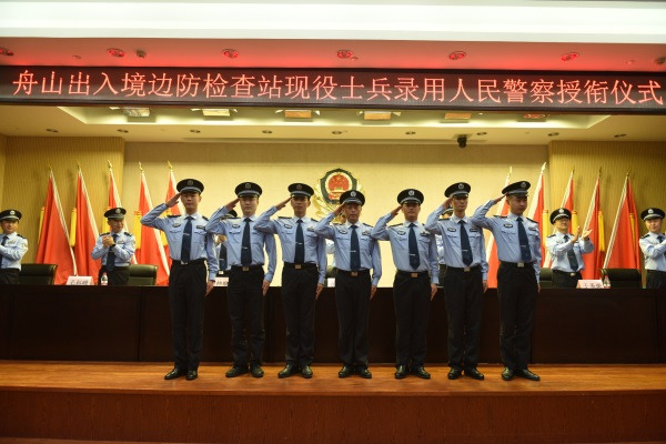 “八一”将至,根据原公安边防部队改革部署和工作推进,近日上午,舟山出入境边防检查站举行现役士兵录用人民警察授衔仪式,84名转改新警首次被授予警衔、配发警号,完成从武警战士到人民警察的华丽转身。